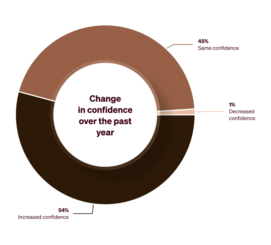 ➡ Nearly 80% express at least some confidence, but only a small fraction feel fully assured.
