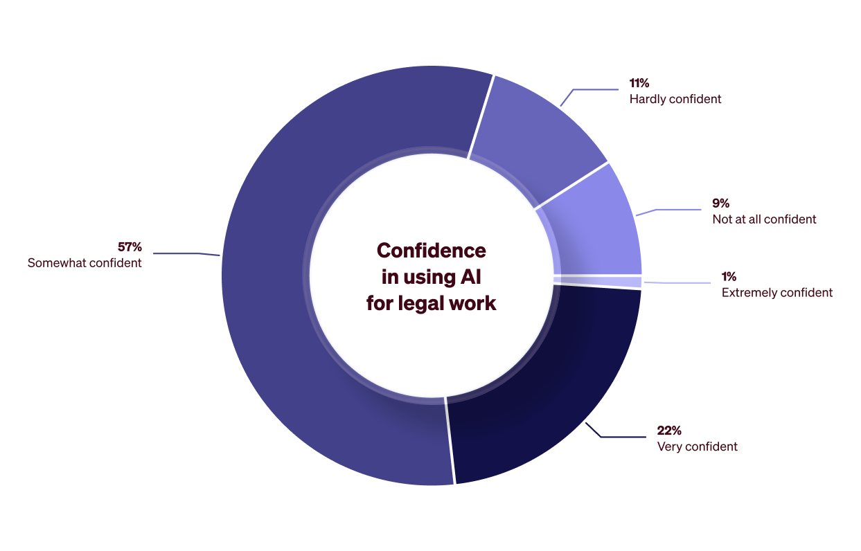 - Trust is conditional: most legal professionals are only somewhat confident in AI accuracy and continue to verify outputs.