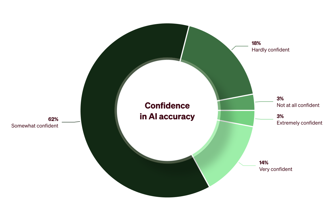 - Confidence is growing—but slowly. Experience and familiarity are improving perceptions, even amid public AI failures and increased scrutiny.