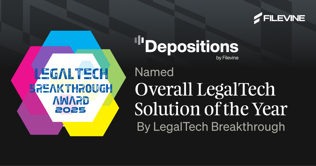 SALT LAKE CITY, November 13, 2025 – Filevine, the pioneer of the Legal Operating Intelligence System (LOIS), today announced Depositions by Filevine has been selected as “Overall LegalTech Solution of the Year” in the 6th annual LegalTech Breakthrough Awards program conducted by LegalTech Breakthrough, a leading independent market intelligence organization that evaluates and recognizes standout legal technology companies, products and services around the globe.