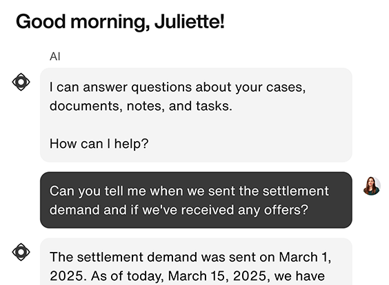It is more than case management or an AI add-on, it’s the legal operating intelligence system. Built into the legal system of record, it unifies case management, document automation, communication, billing, compliance, analytics, and AI. As teams move through their everyday workflows, it naturally connects structured, semi-structured, and unstructured data so legal professionals can act on insights without ever leaving the flow of work.